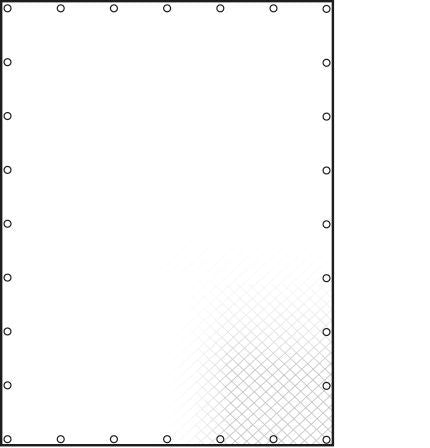 Im verstärkten Rand sind umlaufend alle 10 cm Löcher vorgestanzt, so dass auf Stahl- oder Messingösen verzichtet werden kann - ausgelegt auf 580N pro Loch