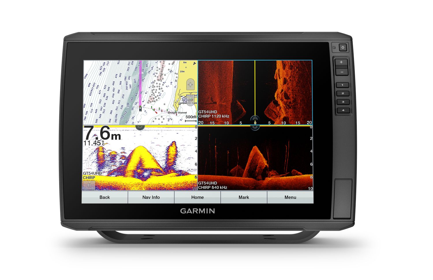 Kompatibel mit den Garmin Panoptix Gebern. Unterstützung von traditionellen CHIRP, CleaVü-, Side-Vü und Ultra-HD-Echoloten. Kompatibel mit Garmin BlueChart g3 oder Blue-Chart g3 Vision HD-Karten mit Auto Guidance-Funktion.