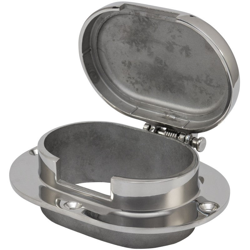 Decksdurchführung mit Deckel aus rostfreiem Edelstahl.
