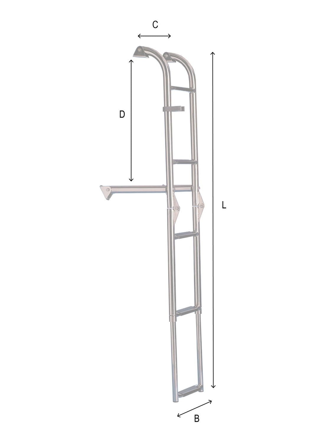 Fünfstufige Heck-Badeleiter mit Teleskop-Unterteil.