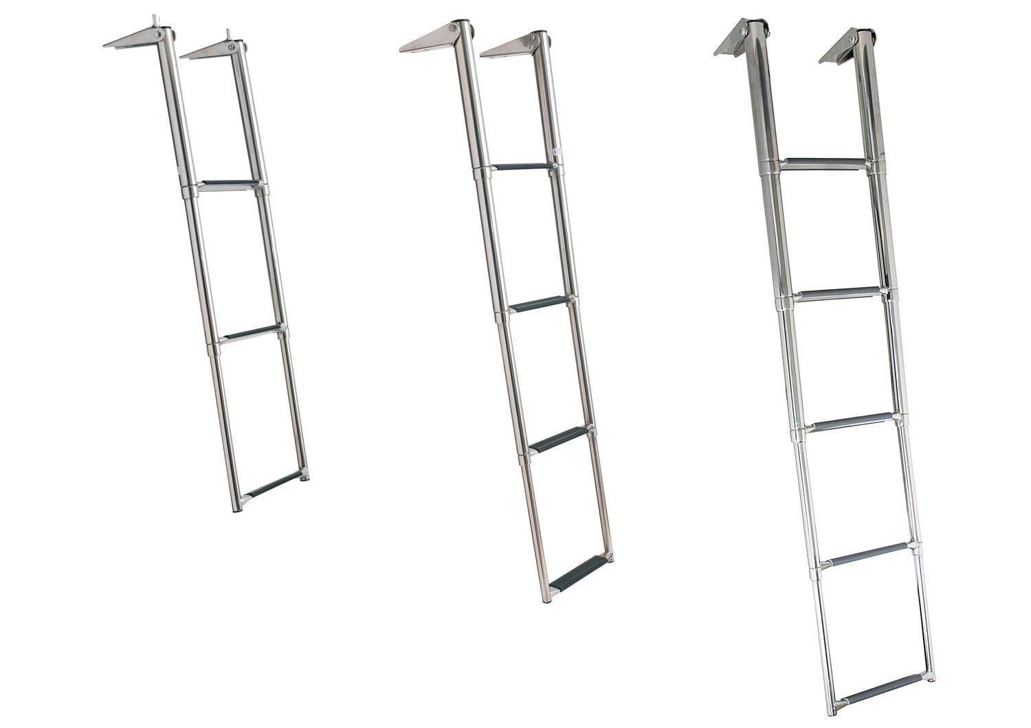 Praktische, platzsparende Teleskopleiter in drei verschiedenen Montagevarianten für z.B Bug- und Badeplattformen.