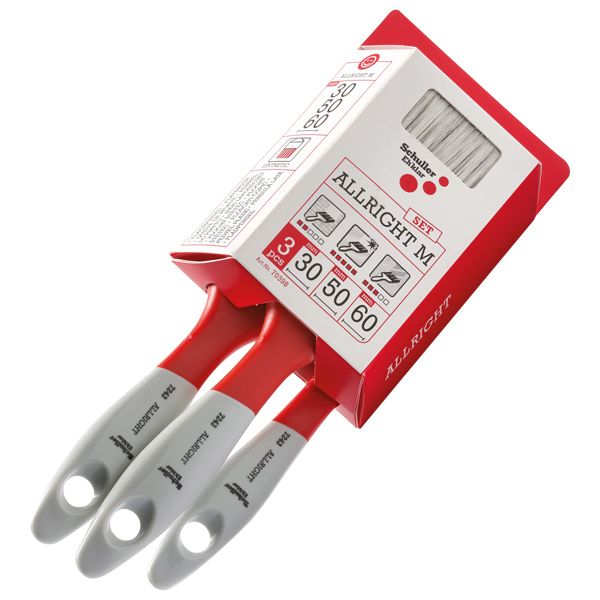 Die Pinsel sind formstabil, haben eine sehr gute Farbaufnahme und die weichen Spitzen sorgen für ein perfektes Finish. Der Pinsel eignet sich hervorragend für alle Farben, Lacke und Holzschutzmittel, insbesondere aber für wasserverdünnbare Farben und Lacke. Das Set besteht aus jeweils 3 Pinseln in der Breite von 30, 50 und 60mm