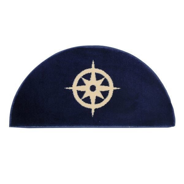 Halbrunde, blaue Fussmatte mit weißer Kompassrose, kräftiger Einfassung und rutschfester Unterlage.