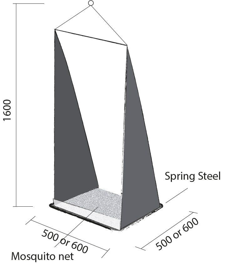 Eine flexible Latte hält den Windsack auch bei wenig Wind geöffnet, das integrierte Moskitonetz schützt vor Insekten.
