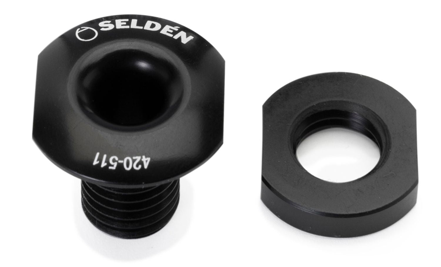 Seldén Decksdurchführung aus schwart eloxiertem Aluminium mit Acetal-Kontermutter.