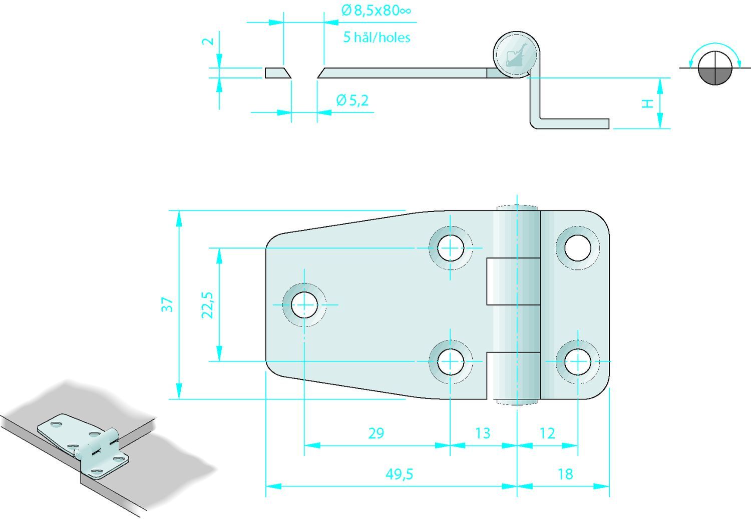 Türscharnier aus Edelstahl AISI 304.