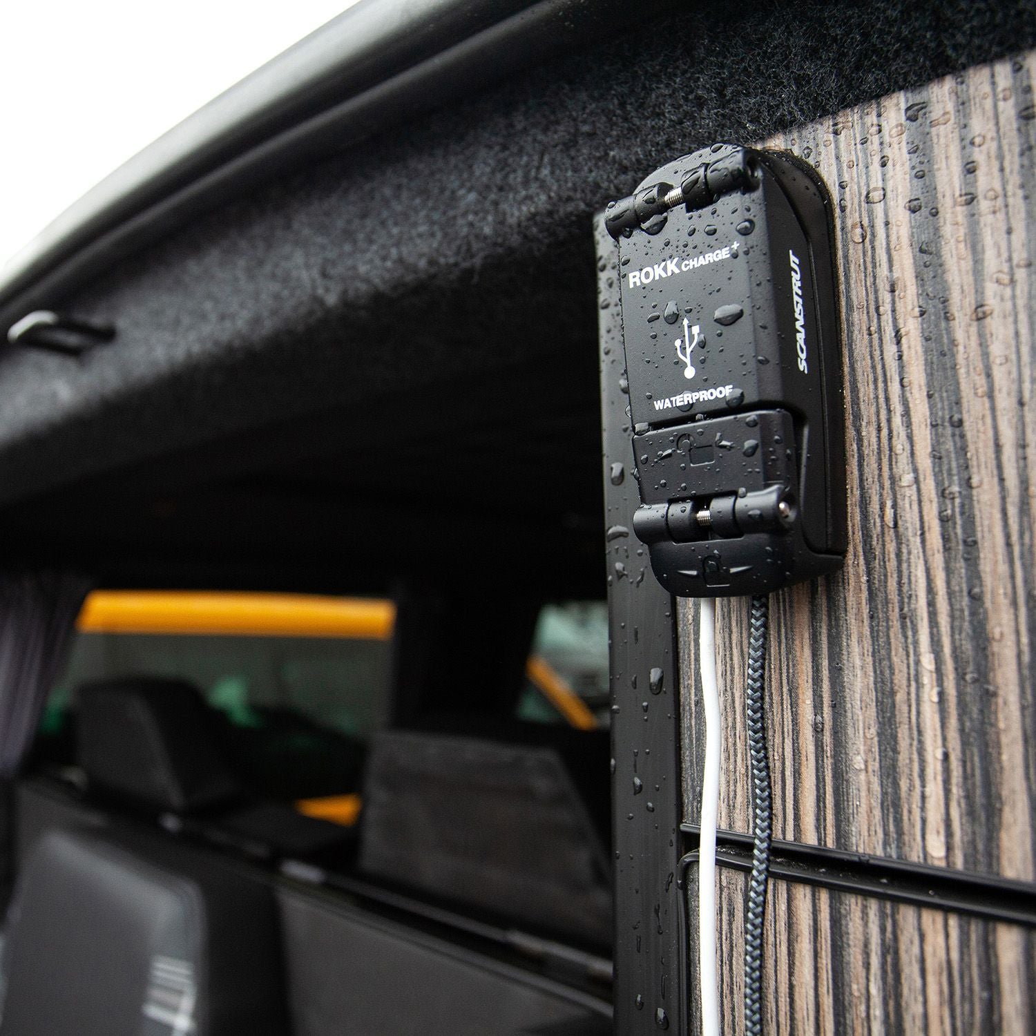 Die USB-Steckdose erlaubt das Aufladen von bis zu zwei Geräten, bei allen Wetterbedingungen. Der federbelastete IPX4-Deckel schützt die Dose effektiv vor Wasser. Das Gehäuse ist aus einem stabilen und UV-beständigem Kunststoff, das Scharnier und die Feder sind aus Edelstahl (AISI 316), alle inneren Kontakte sind aus einer nickelplattierten Kupferlegierung gefertigt.