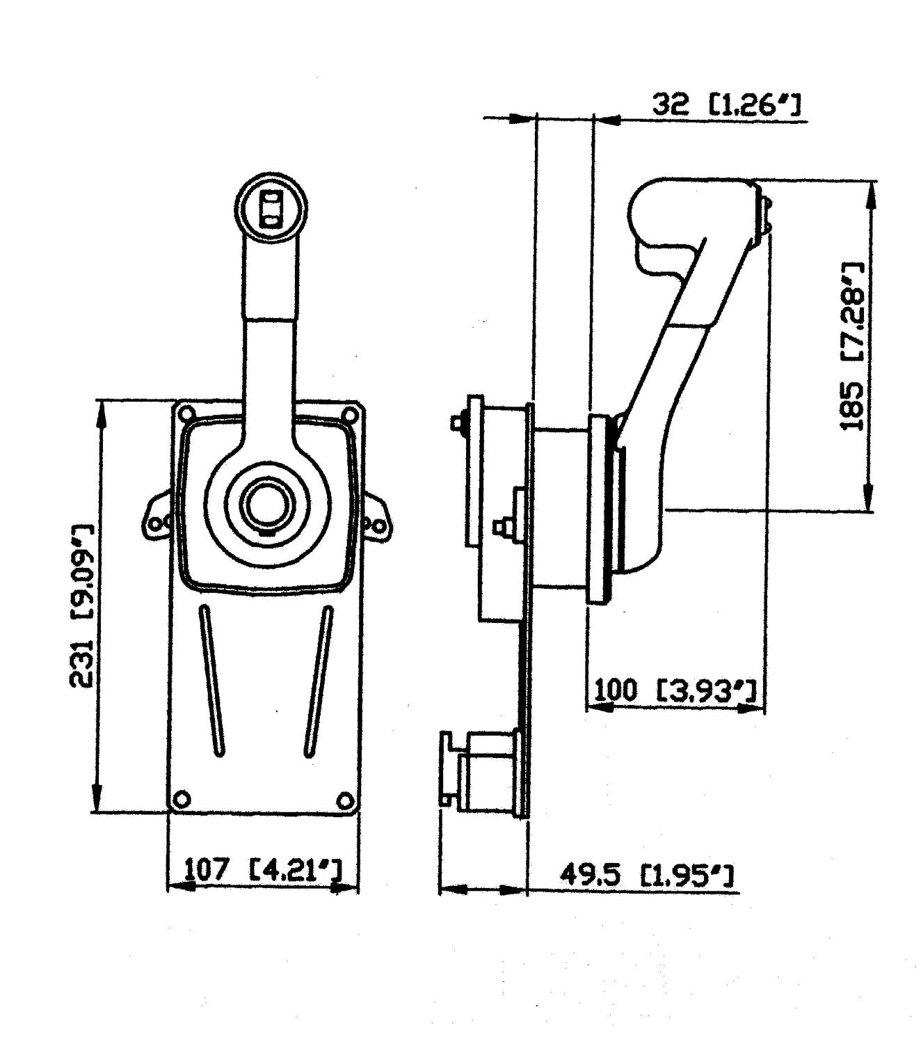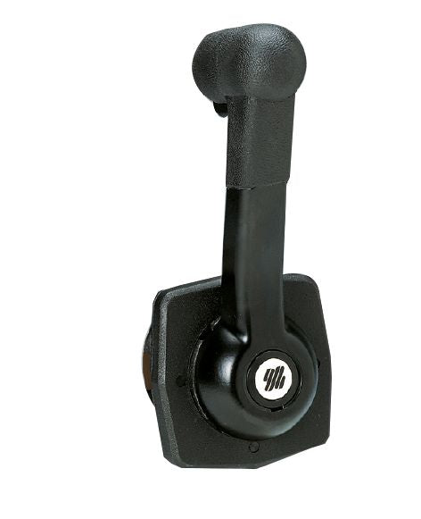 Mechanik auf der Rückseite, um 360˚ drehbar. Schwarz beschichteter Aluminiumhebel mit großem PVC-Griff mit integriertem Leerlaufschalter.