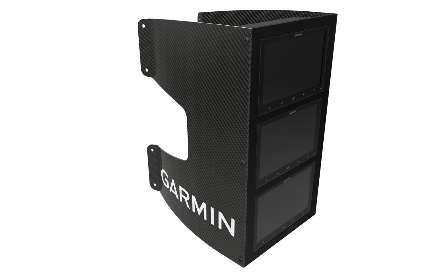 Flache, versenkte Montage des GNX 120-Displays in einer Carbon-Masthalterung.