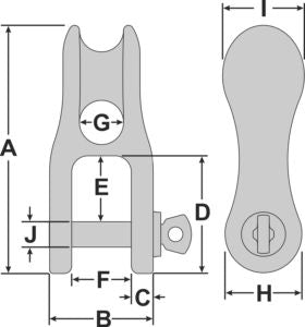 | Typ | A mm | B mm | C mm | D mm | E mm | F mm | G mm | H mm | I mm | J mm | für Tauwerk | Arbeitslast kg | Bruchlast kg | Gewicht g |