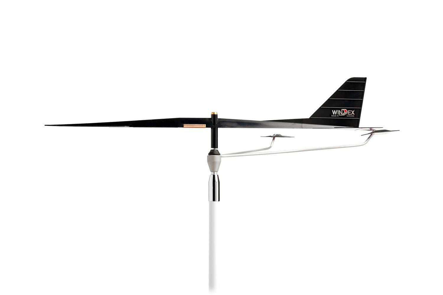 The Windex is securely connected to the Scout antenna via a chrome-plated connection. The Windex rotates on a sapphire bearing and indicates the wind direction even in very light winds from approximately 2/10 of a knot.