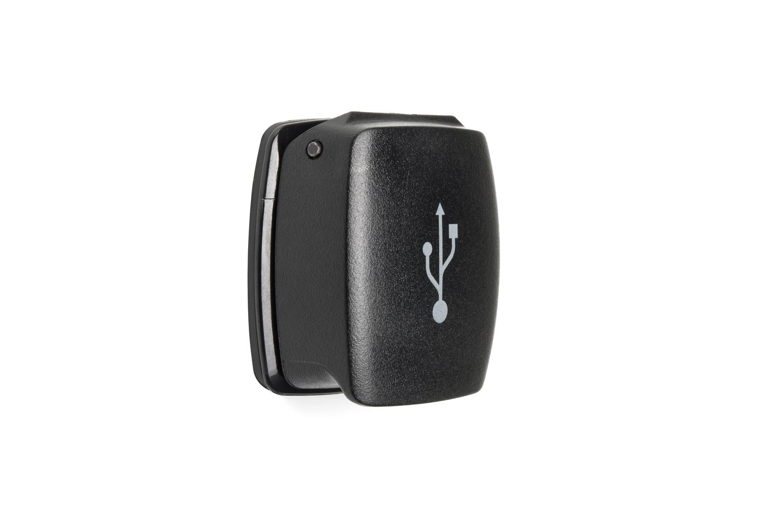 Splashproof (IPX4 with closed lid) charging socket with 1x USB-A and 1x USB-C port for ultra-fast charging: with up to 36W for 12-volt systems and up to 60W for 24-volt systems, it is ideal for charging laptops, for example. Simultaneous fast charging of an iPhone and an iPad is also no problem.