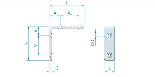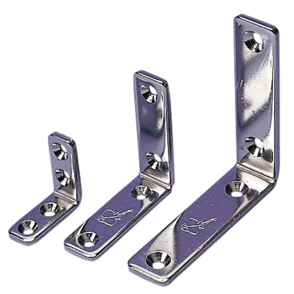 Angle fitting made of rustproof, electropolished stainless steel AISI 304. Material thickness: 3mm.
