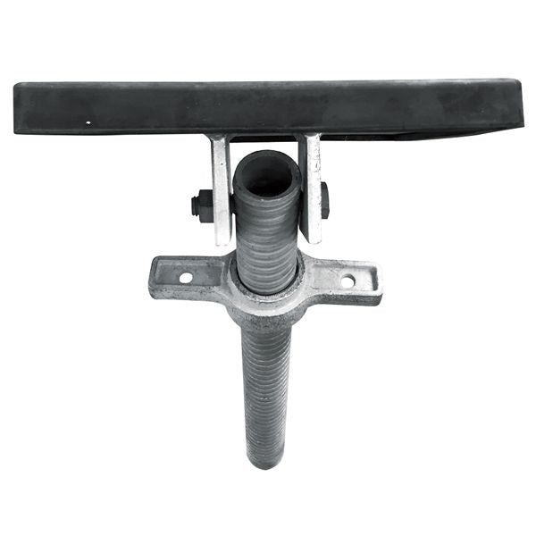 Seitliche Auflage aus verzinktem Stahl, mit 40 cm langer Gewindestange und Spindel. Das Gummi der Auflage schützt den Rumpf.