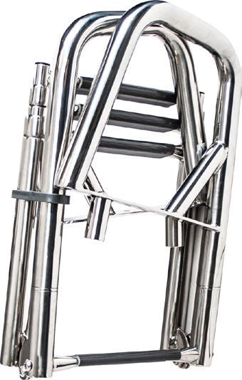 Badeleiter zur Montage an Heckplattformen oder Stegen. 4-stufig, teleskopier- und klappbar.