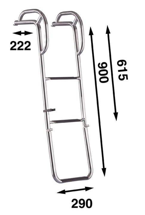 - dreistufig (aus rostfreiem Stahl AiSi 316, unterste Stufe klappbar)
