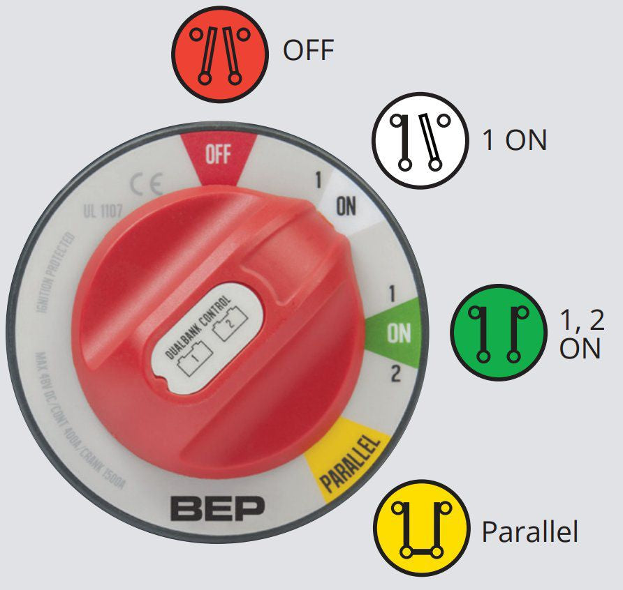 Drei Batterieschalter in einem. Die perfekte Lösung für zwei Batteriebänke an Bord.