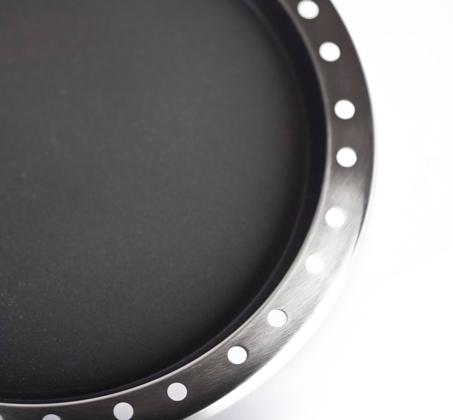 Die Löcher am Rand der Pfanne dürfen abgedeckt werden, da dies den Luftstrom blockiert, der für den ordnungsgemäßen Betrieb des COBB Grills notwendig ist.