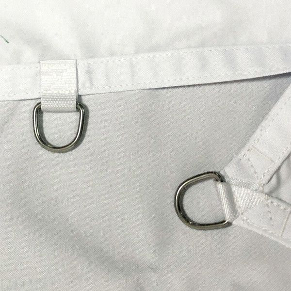 Hergestellt aus wasserdichtem 600er Denier Polyester. Mit je einem Edelstahl D-Ring in jeder Ecke. Inkl. 5 Meter geflochtenem Seil zum Verspannen.