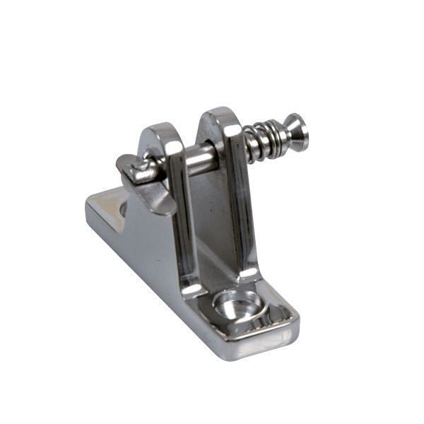 Decksbeschlag aus hochglanzpoliertem Stahl AISI 316 für 22mm Rohr. Mit Arretierstift. Passt zu den bereits gängigen Sprayhood-Halterungen auf dem Markt.