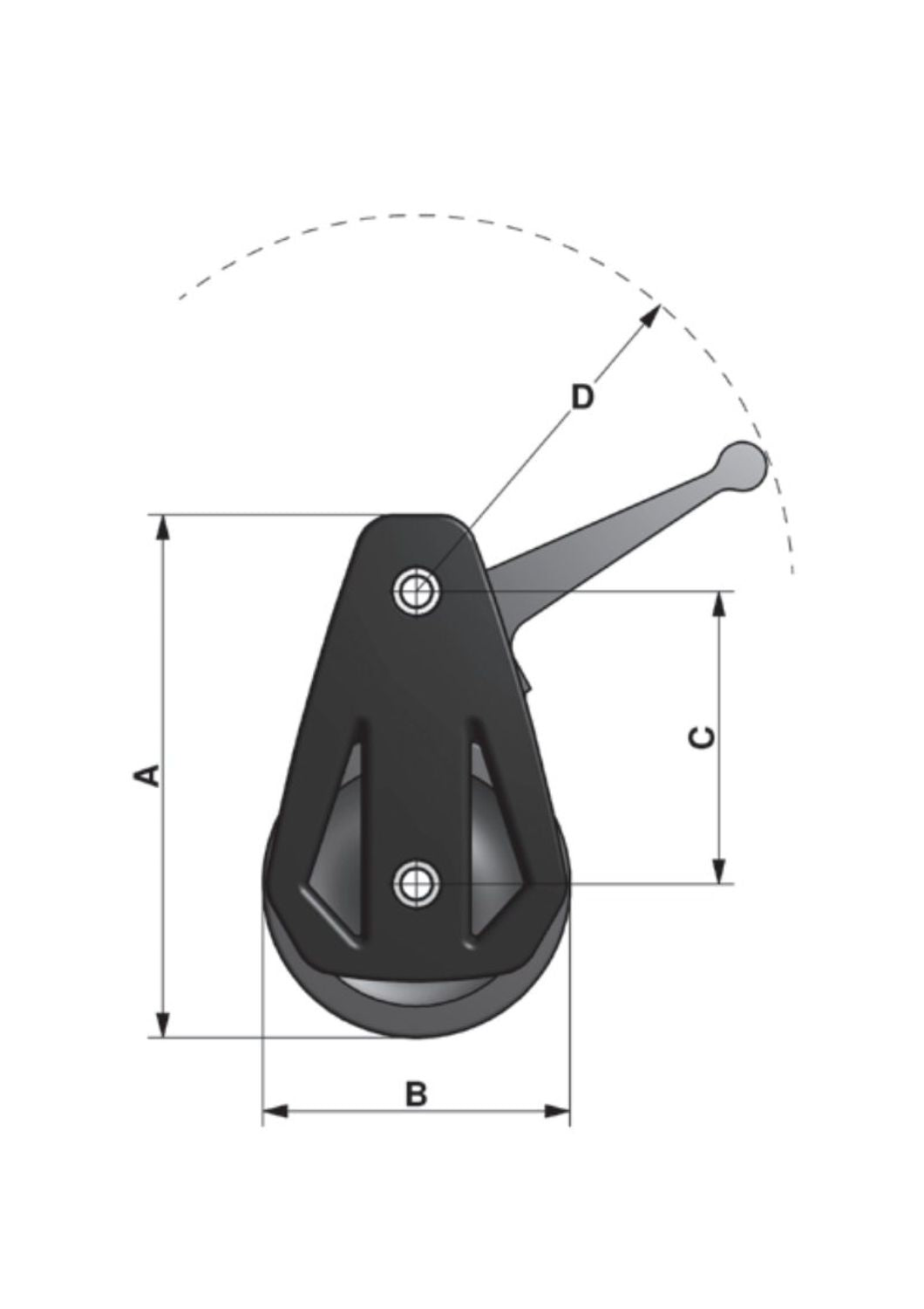 Bezeichnung A mm B mm C mm Arbeitslast kg Bruchlast kg max. Leinen-Ø mm Schrauben