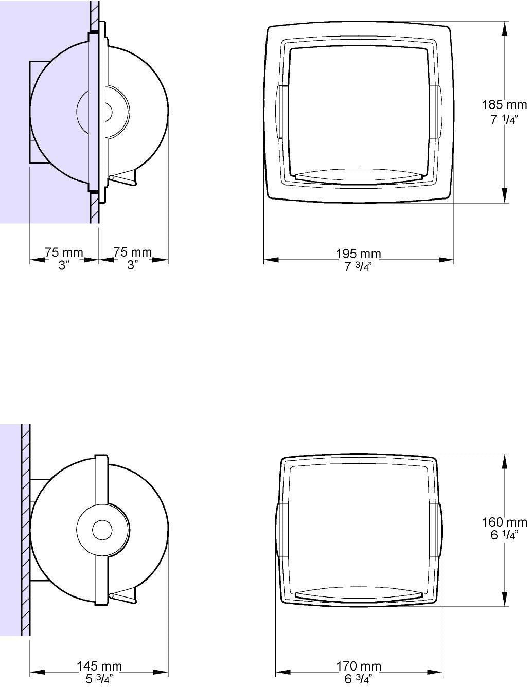 Abmessungen Einbauversion BxHxT: 195 x 185 x 75/75 mm.