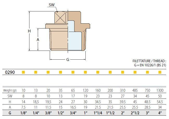 Verschlussstopfen mit Aussengewinde und Vierkant aus hochwertigem, seewasserbeständigem Messing.