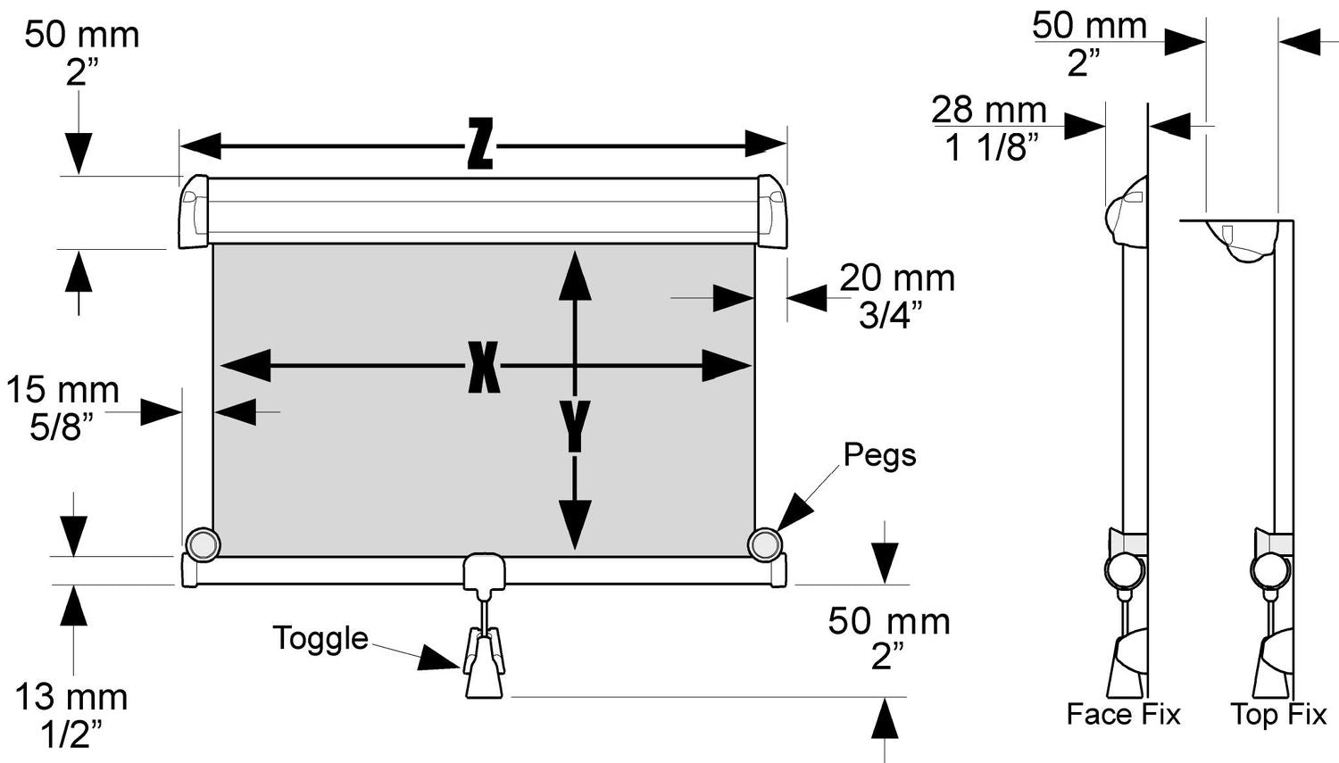 Das Hatchshade750 ist ein Kassettenrollo zur vertikalen oder horizontalen Montage.