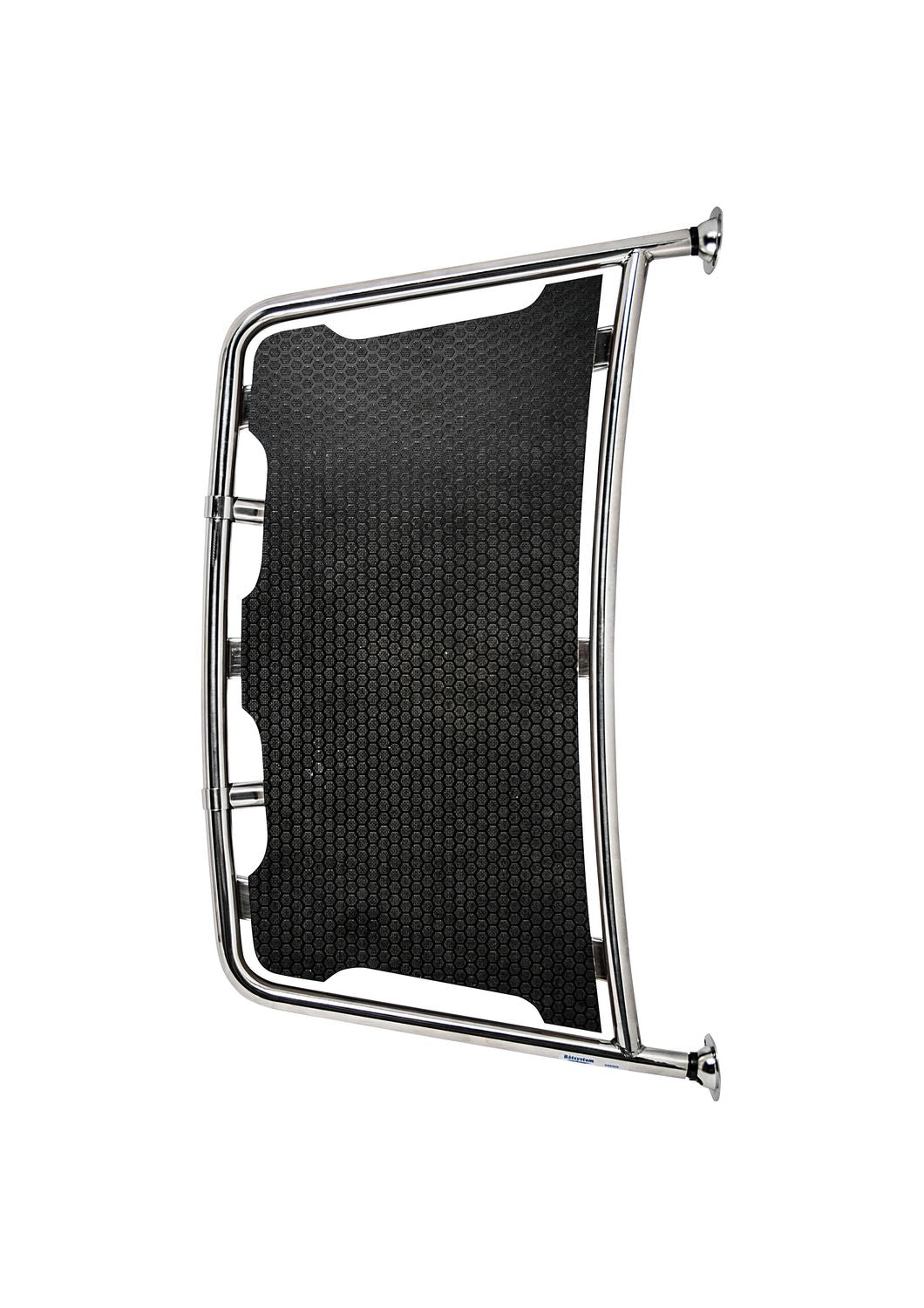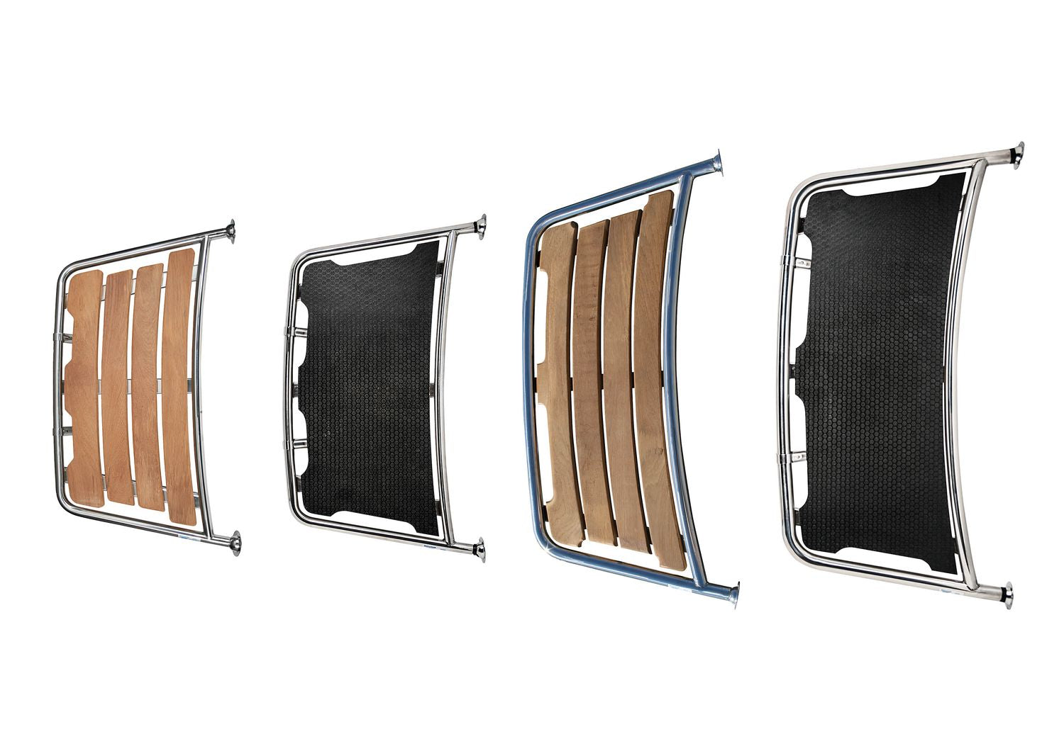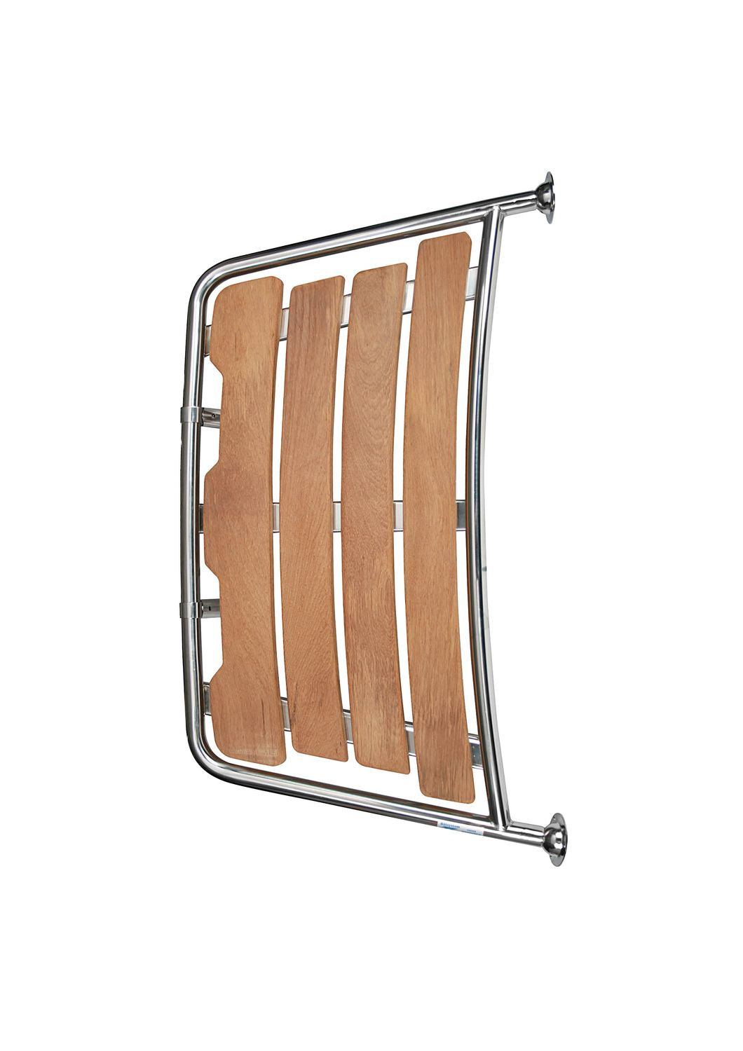 Plattform mit Teak- oder mit schwarzer Trittfläche. Aussparungen in der Trittfläche ermöglichen einen sicheren Halt beim Badespaß oder in einer MOB-Situation. Kombinierbar mit verschiedenen Båtsystem Bordleitern.