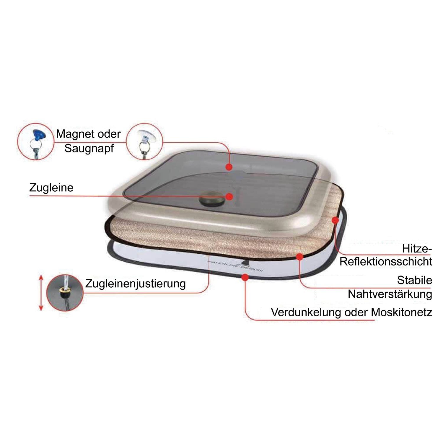 Hinweis: Der Waterline Design Hitze- und Feuchtigkeitsschutz muss zusammen mit einer Waterline Design Verdunkelung* oder einem Waterline Design Mückennetz* der gleichen Größe verwendet werden.