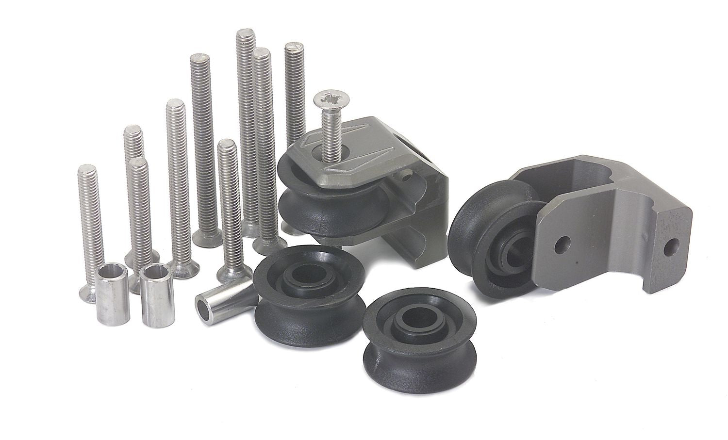 Traveller-Anbausatz mit zweischeibigen Blöcken zum herstellen einer vierpartigen Travellertalje. Lieferung im Paar.