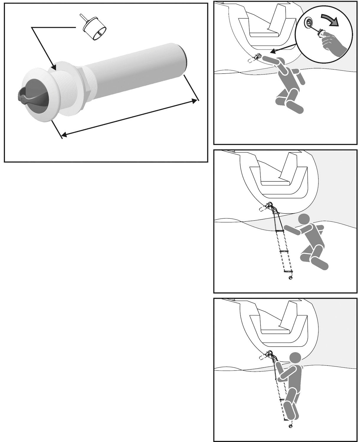 3-stufige Notleiter aus Polyestertauwerk mit Polypropylenstufen in einem Kunststoffrohr untergebracht.