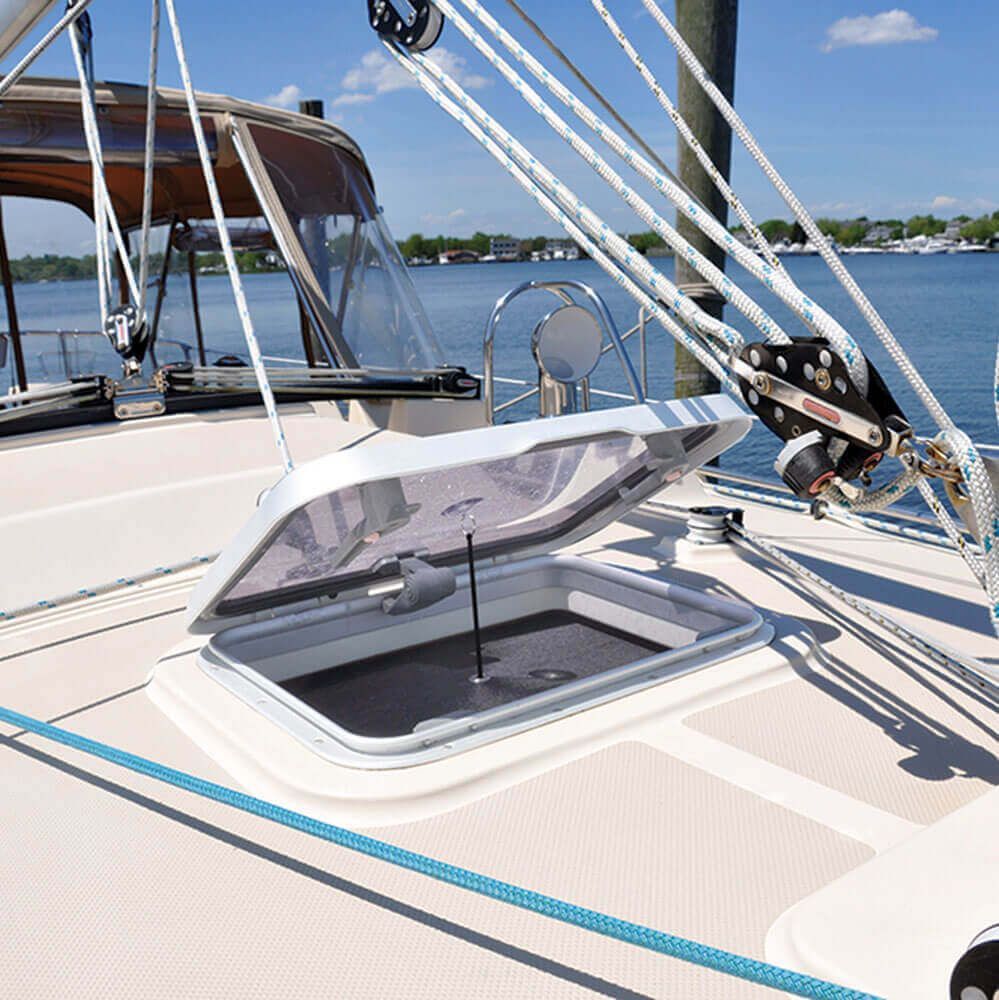 Die Installation dauert nur wenige Sekunden und ist kinderleicht. Sie erfolgt mit einen Saugnapfhalter auf der Innenseite des Lukenglases.