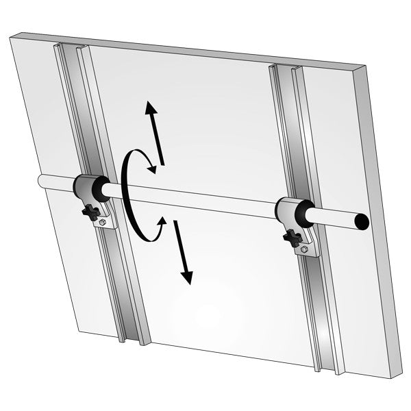 - zwei Rohrhalterungen für 25 mm dicke Rohre.
