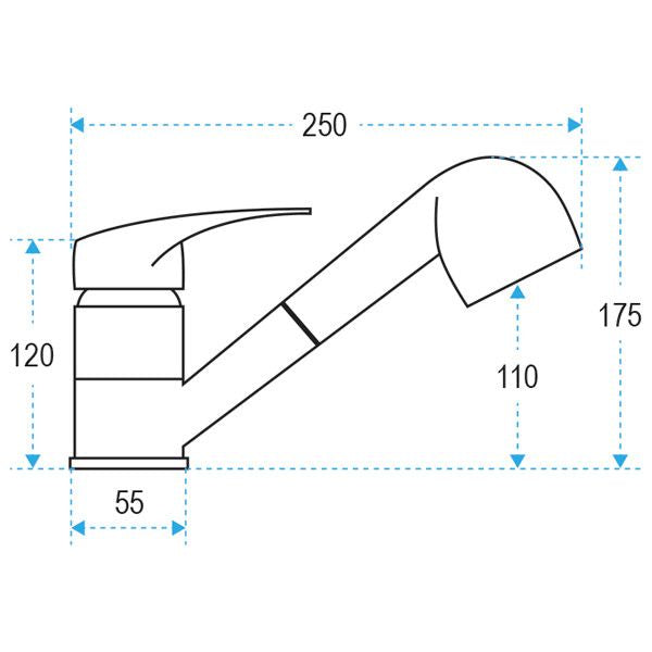 Wasserhahn mit ausziehbarem Duschkopf und flexiblem Schlauch von 150cm.