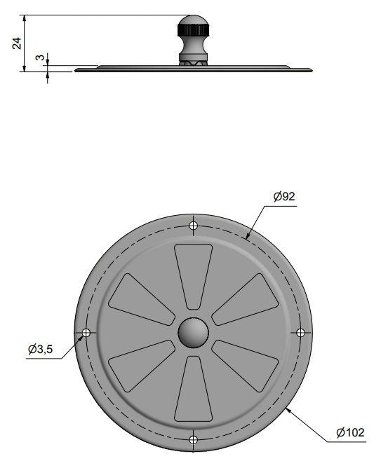 Rosettenlüfter aus Edelstahl mit verstellbarer Lüftungsöffnung.