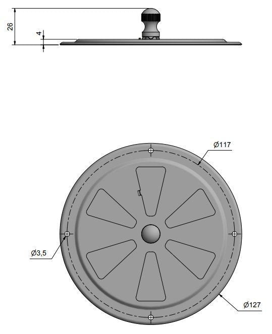 Wahlweise mit 100mm oder 125mm Durchmesser lieferbar (siehe Auswahl).