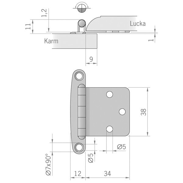 Tür- und Fensterscharnier aus Edelstahl AISI 304.