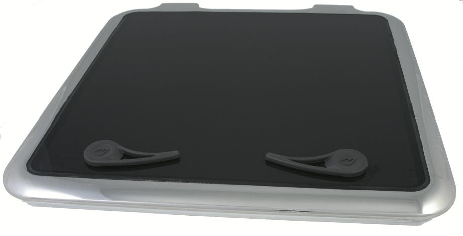 Decksluke mit Aufsteller und einem Rahmen aus nahtlosem, nichtrostendem Stahl. Die Scheiben sind aus getöntem Acryl mit zwei integrierten Griffen zum Öffnen und von innen verriegelbar. Im Lieferumfang enthalten ist der Innenrahmen aus extrem hartem und UV-resistentem, weißem Komposit-Material. Zertifiziert nach ISO 12216.