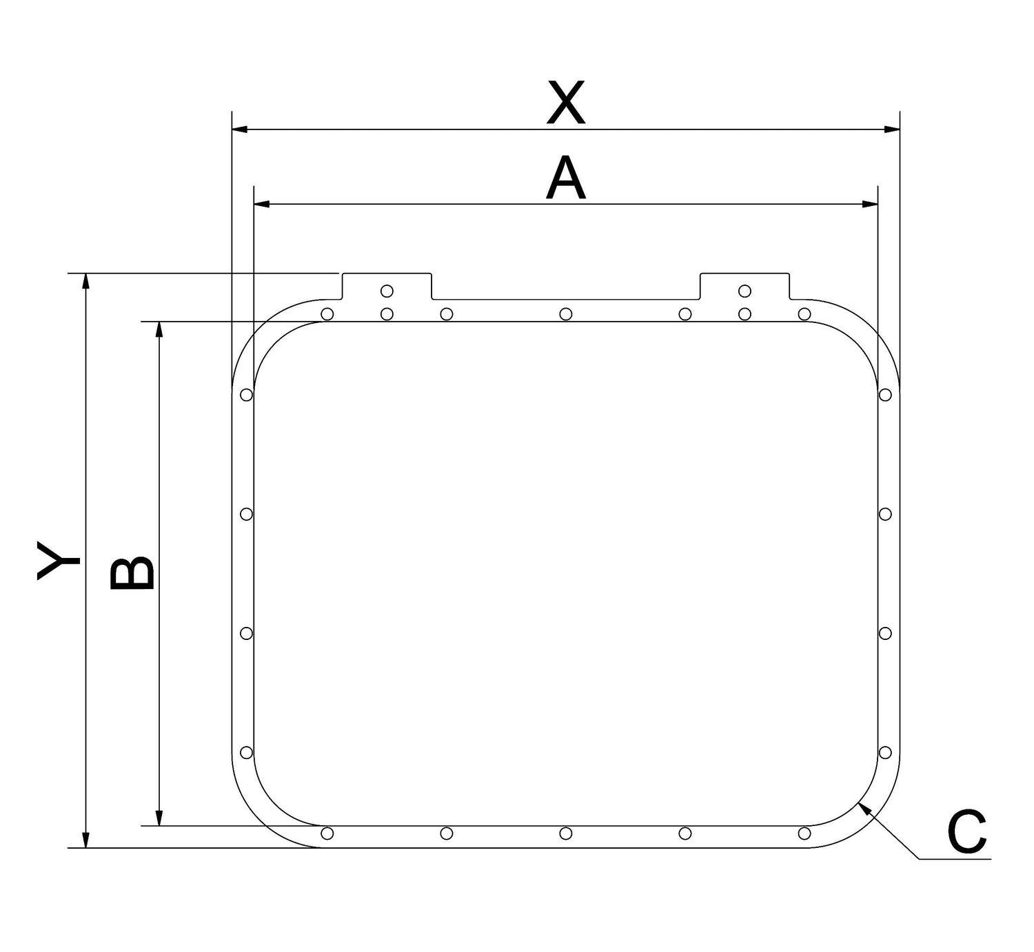 Ausschnittmaße A - B - C (Radius): 520 - 420 - 60mm