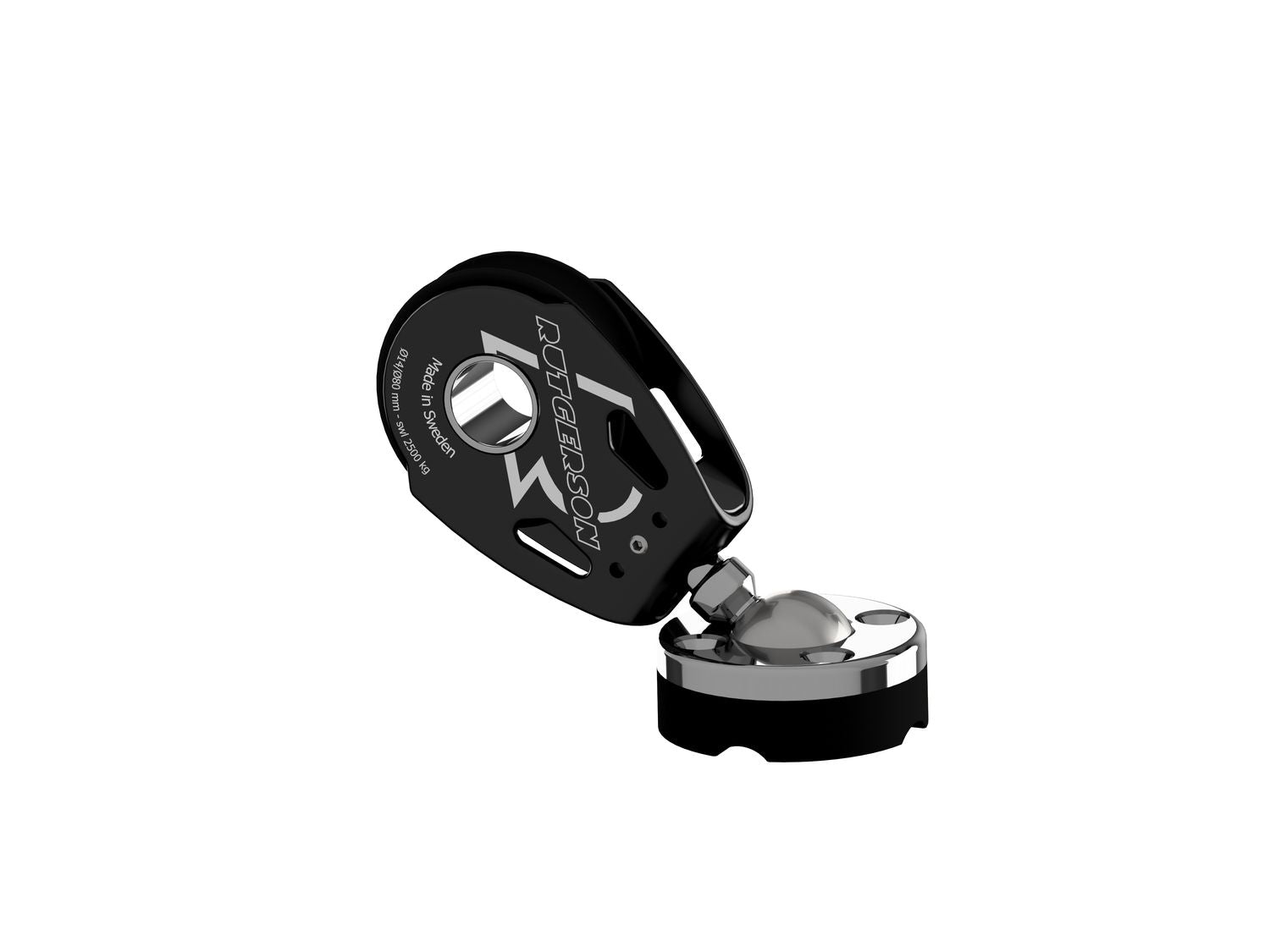 Die elegante Alternative zum herkömmlichen Padeye mit einzigartigem Kugelgelenk! Unter Last stellt sich das Kugelgelenk im optimalen Winkel zur Zugrichtung ein. Dank des innovativen Kugelgelenksystems lässt sich der Block in einem Winkel von 50° zum Deck neigen und kann so gefährliche Überläufer auf der Winsch vermeiden. Das Kugelgelenk ist aus hochglanzpoliertem Edelstahl gem. AISI 316 gefertigt. Die Basisplatte wird mit vier M8-Senkkopfschrauben montiert (nicht im Lieferumfang).