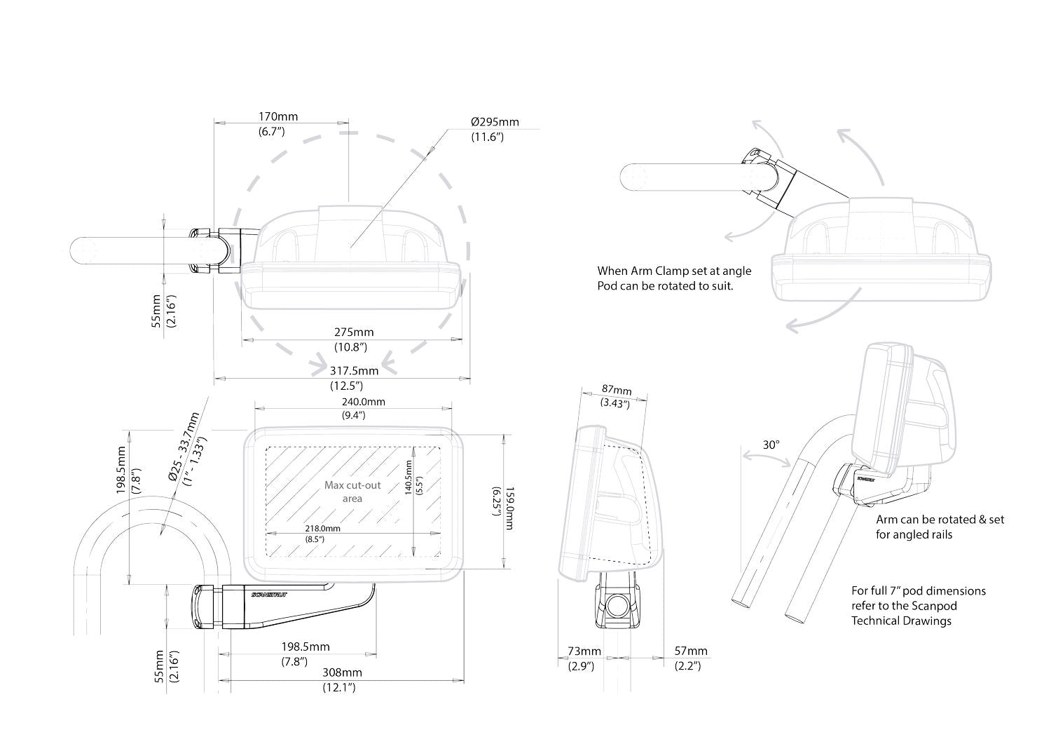 Scanstrut Arm Pod Gerätehalter SPR