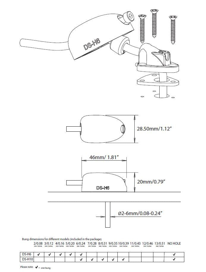 Scanstrut Kabeldurchführung DS-H6 Kunststoff waagerechte Montage für Kabel D=2-6mm grau