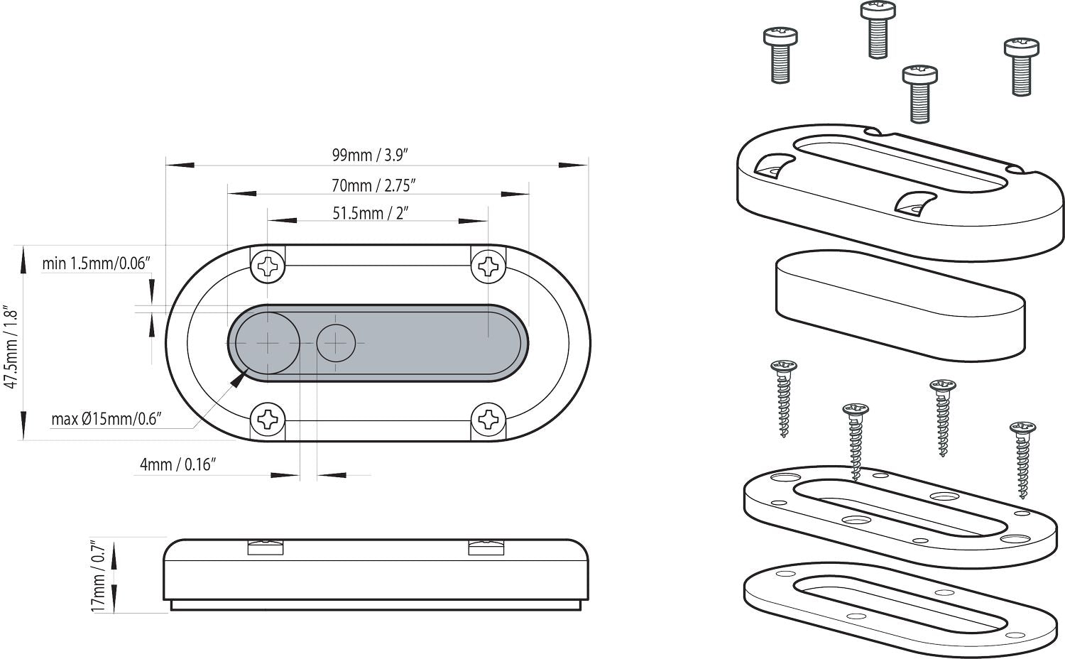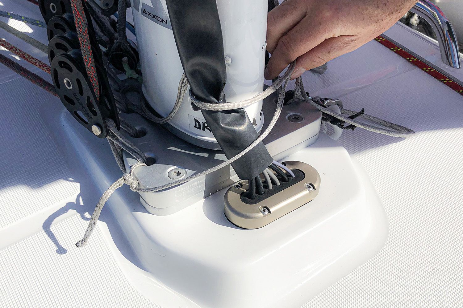 Es ist kein Dichtmittel an der Monatagefläche nötig. Die Durchführung lässt sich sehr einfach installieren. Auch nach der Installation können die Kabel jederzeit wieder getrennt oder durchgeführt werden, ohne dass die Kabeldurchführung komplett vom Deck abgeschraubt werden muss.