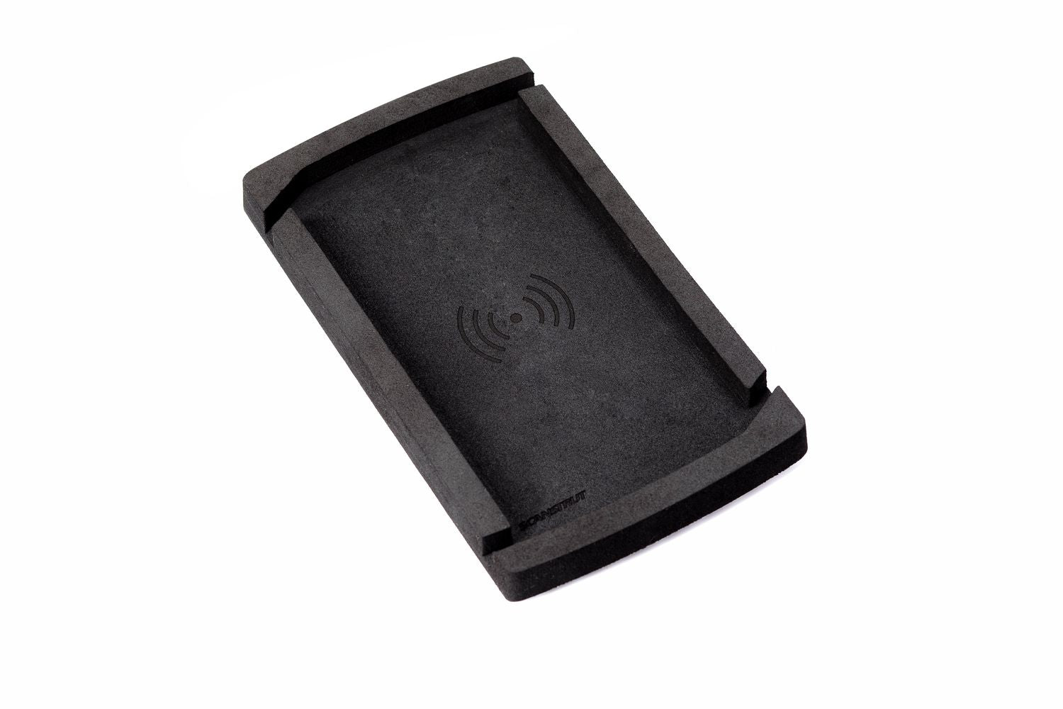 Einfache Installation: Das Wireless-Ladegerät ist auf der Rückseite mit 3M-Klebestreifen versehen. Es muss lediglich ein Loch mit einem Durchmesser von 65 mm gebohrt werden, über das dann die Ladeschale geklebt wird. Zusätzliche Schrauben sind nicht nötig.