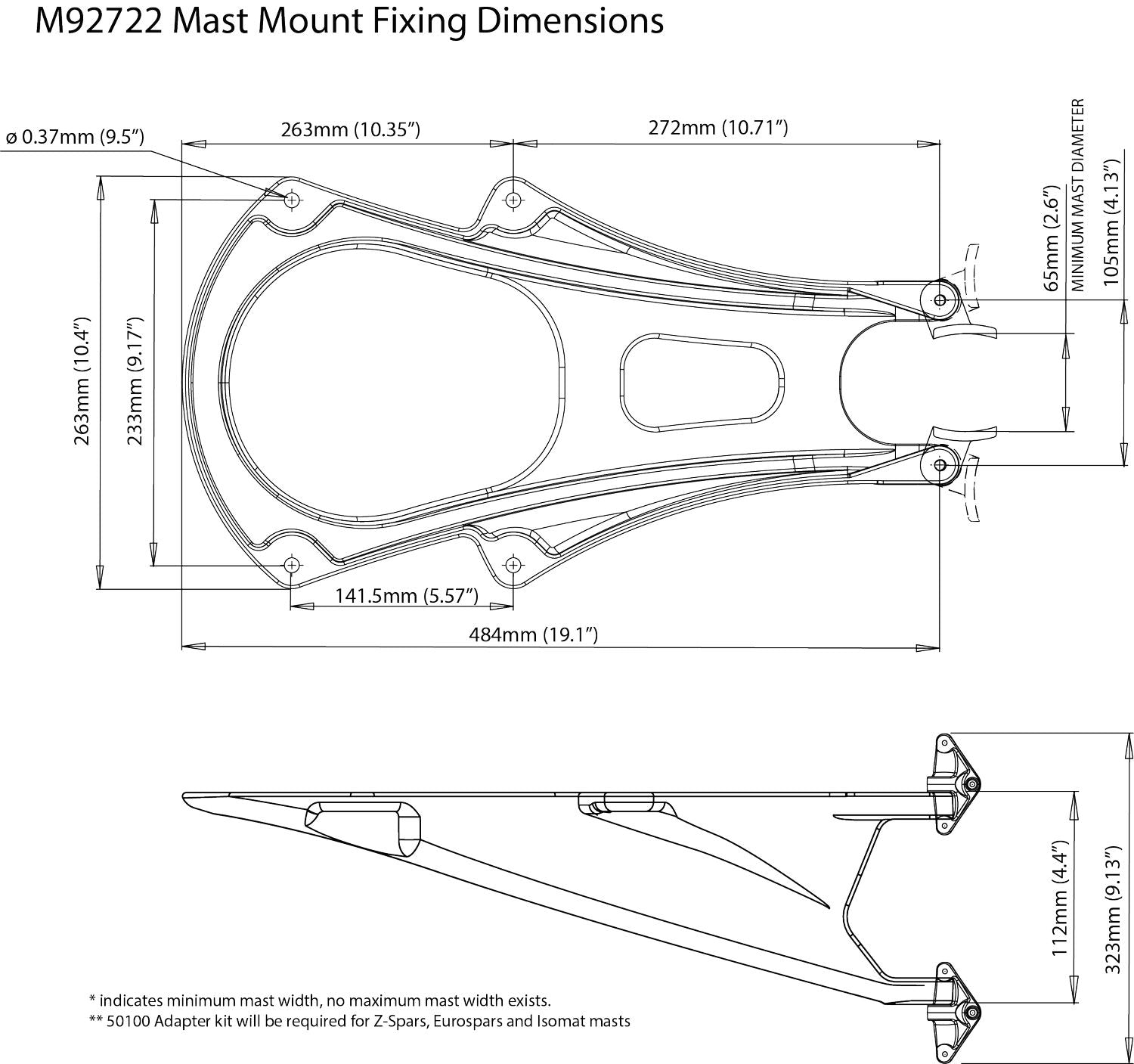 Durch die vier seitlichen Schwenkfüße passt die Halterung zu einer Vielzahl von Mastprofilen. Sie wird an 12 Punkten mit hochwertigen Monel-Nieten befestigt.
