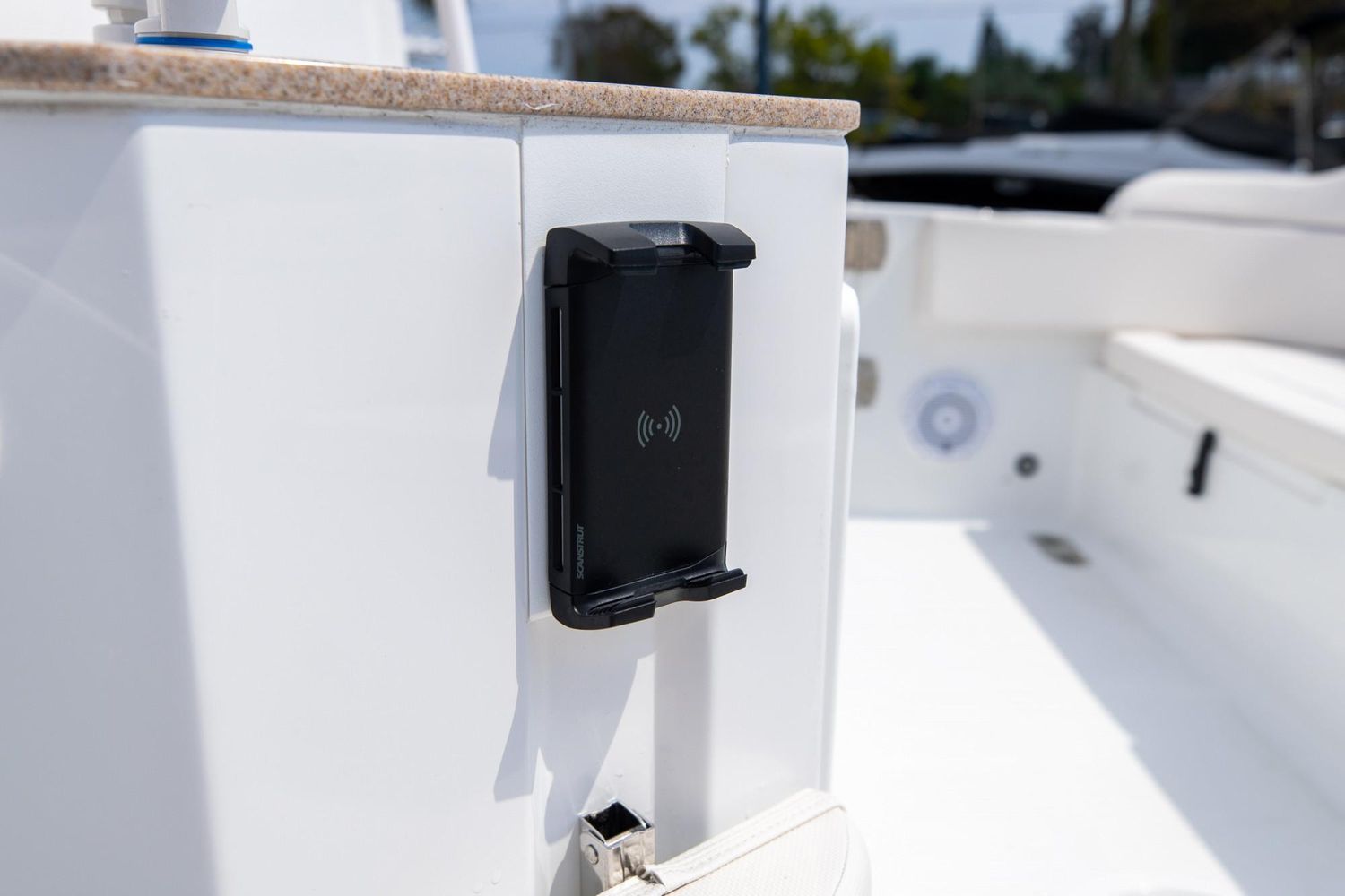 Das QI-zertifizierte Ladegerät AKTIV SC-W-04F ermöglicht ein kabelloses, induktives Laden eines Mobiltelefons sowohl über, als auch unter Deck. Die Ladehalterung aus eloxiertem Aluminium ist UV-beständig und wasserdicht gemäß IPX6.