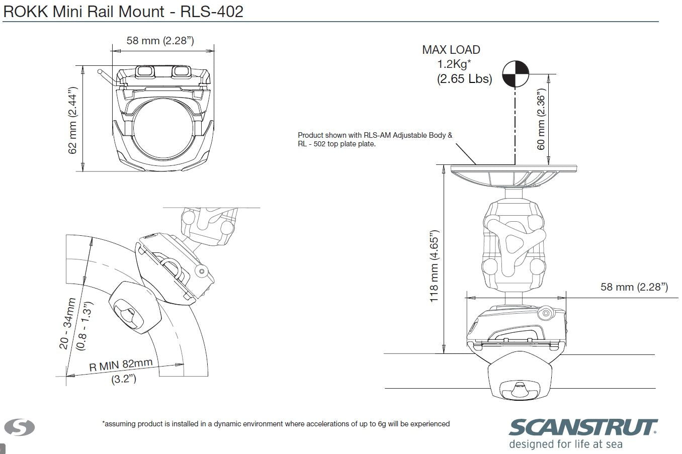 Basis zur Montage an Rohren (Ø 19 bis 34 mm) für die Scanstrut ROKK MINI Gerätehalterungen. Drei Pads zum Schutz des Rohres und vier Schrauben werden mitgeliefert.