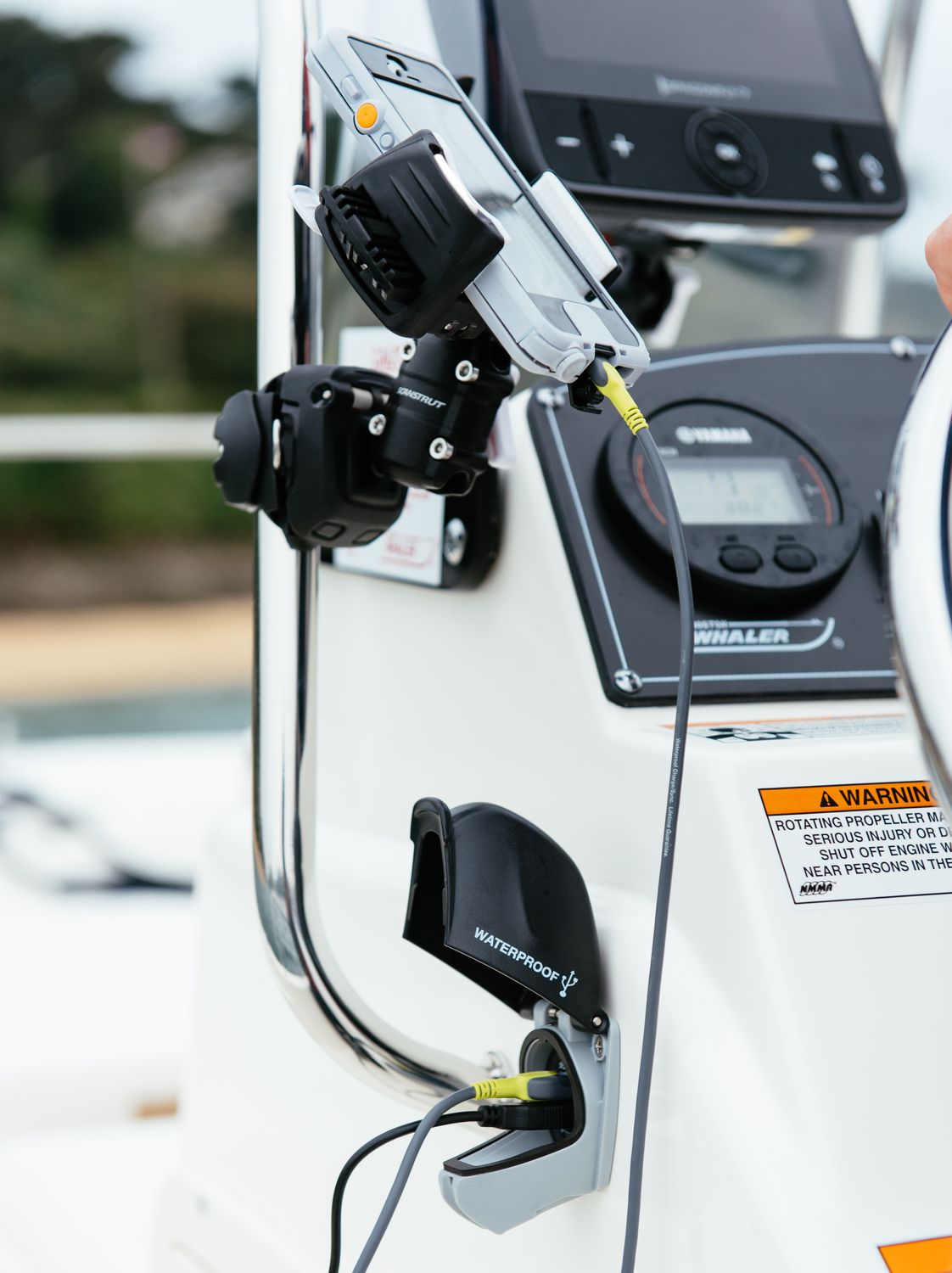 Spritzwasserfeste (IPX4) USB-A-Steckdose, die speziell für den Marine-Bereich entwickelt wurde. Die USB-Steckdose erlaubt das Aufladen von bis zu zwei Geräten, wie Smartphones, Tablets oder Kartenplottern, bei allen Wetterbedingungen.