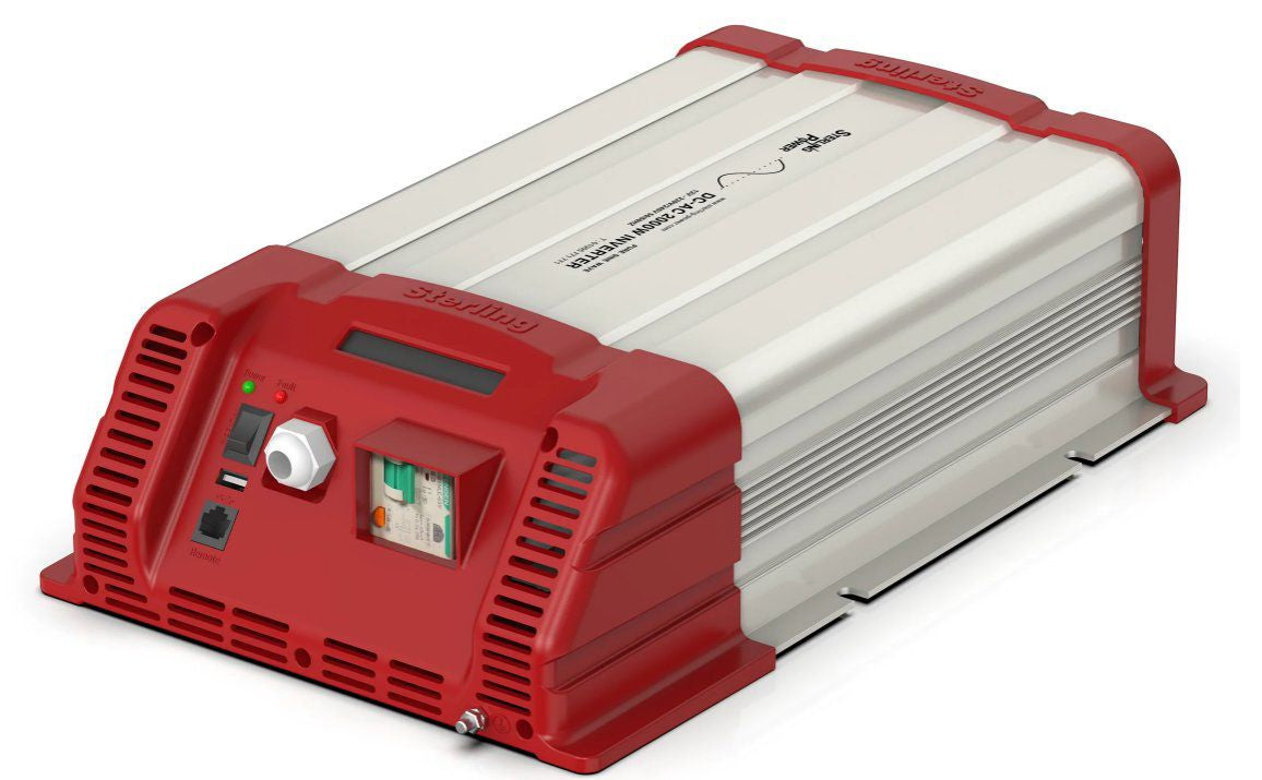 Formt den Eingangsstrom (je nach Modell 12V, 24V oder 48V) extrem effizient in reinen Sinus-Wechselstrom mit 230V um.